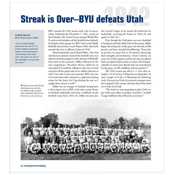 Told from the perspective and personal accounts of more than a hundred former coaches, players, and administrators who helped influence the program, 100 Years of BYU Football is the most comprehensive history of BYU football ever published.